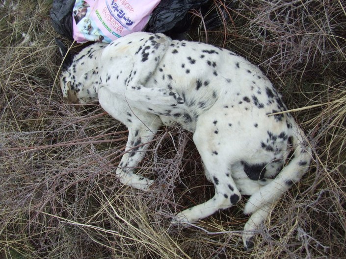 По словам мужчины, на днях он случайно наткнулся на собачьи трупы на выезде из города по Алматинской трассе, приблизительно в сотне метров от основной дороги. "На площади около десяти квадратных метров были разбросаны тела мертвых собак, а рядом с ними лежали мешки также с останками домашних животных, вероятно кошек или щенят. Некоторые собаки явно породистые. Поблизости в целлофановом пакете лежал мертвый попугай. Было сложно определить, убиты эти животные или умерли своей смертью", - рассказал правозащитник Алексей Божков, который также побывал на месте.