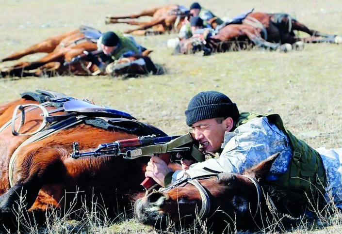 Он также рассказал, что у некоторых старослужащих имеются карточки профессиональных альпинистов, у нас также есть сертификат, подтверждающий покорение вершины в 4 200 метров. Как и положено, при подъеме многочисленной группы солдат они связываются одной веревкой для страховки друг друга. Другой прием: с одной скалы на другую перебираемся с помощью натянутой веревки. Наши инструкторы обладают высоким профессионализмом, они проходили соответствующее обучение в США. Здесь самое важное - меры безопасности", - сообщил старший лейтенант Бек Камбарбекулы.