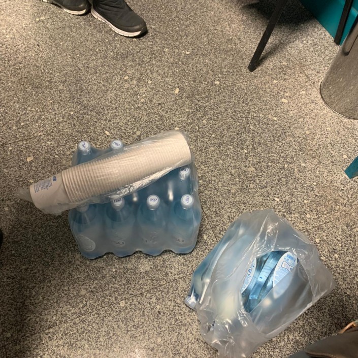 Среди пассажиров была беременная женщина, женщины с детьми, пожилые люди. До сих пор мы находимся в аэропорту. На всех принесли немного воды.