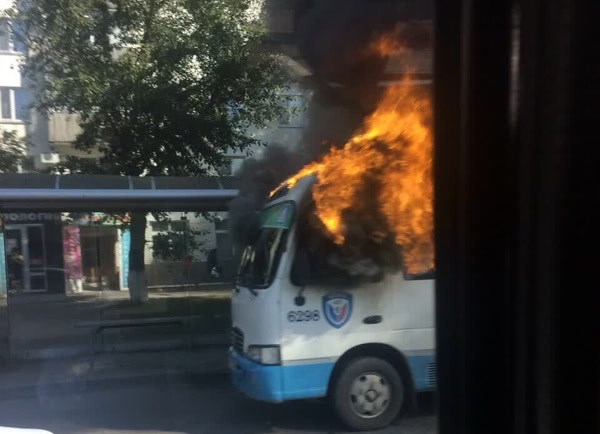 По прибытию пожарных подразделений к месту вызова открытым пламенем горел микроавтобус маршрутом №109. Пассажиры самостоятельно покинули микроавтобус до прибытия пожарных.