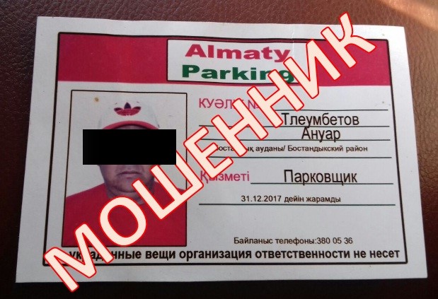 "Просим вас обратить внимание на то, что мошенники носят форму, отличающуюся от официальной формы компании "Алматы СпецТехПаркинг Сервис". Просим обратить ваше внимание на то, что официальные сотрудники носят брендированную форму, имеют номерные жетоны и удостоверения", - говорится в сообщении.