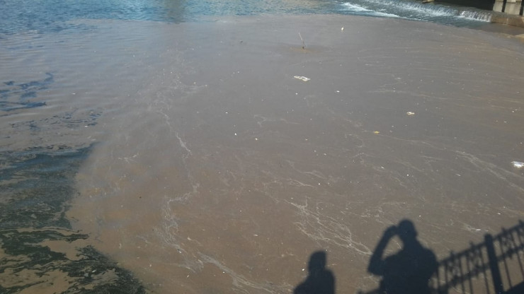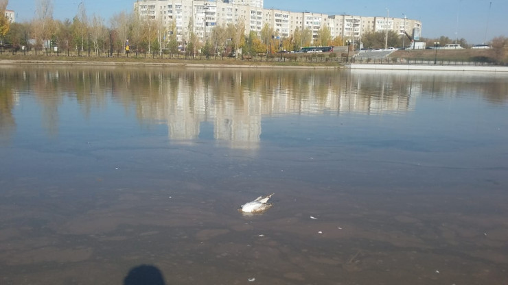 "Плавает мертвая чайка". Река в Нур-Султане покрылась коричневой пленкой