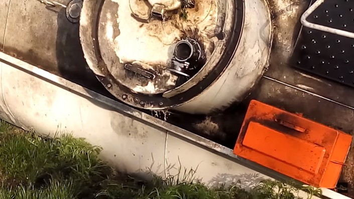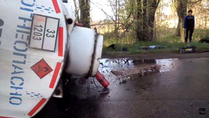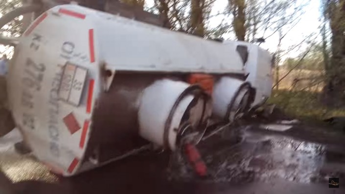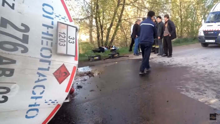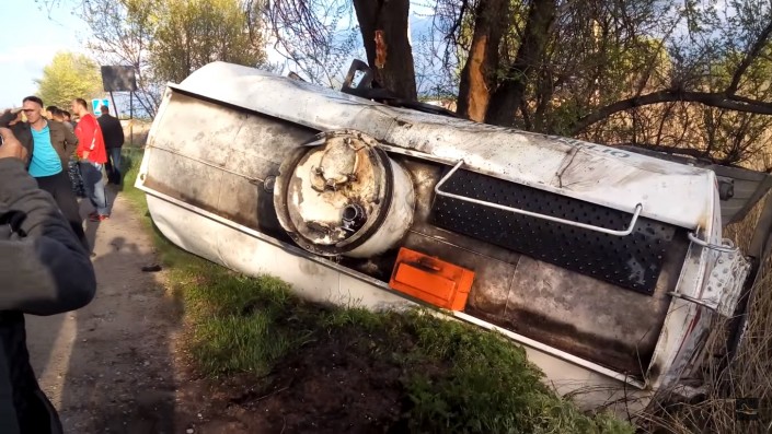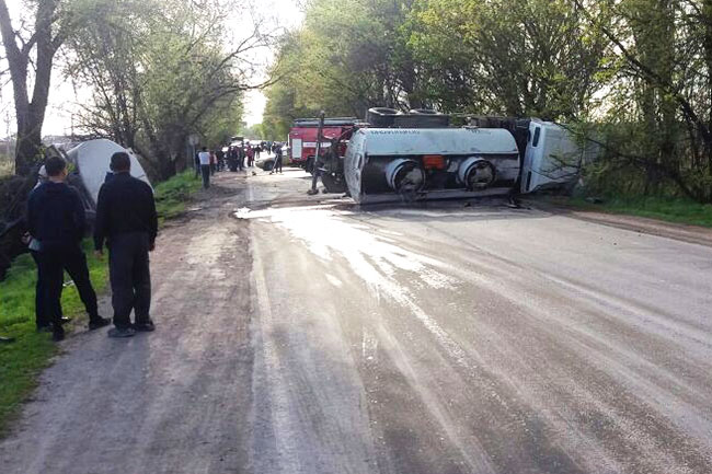 Очевидцы рассказали, что на пути у бензовоза столкнулись внедорожник Mitsubishi Pajero и легковушка LADA. Пытаясь избежать столкновения, водитель автоцистерны резко сманеврировал и завалил машину набок. При этом цистерна с топливом укатилась на обочину другого края дороги. Водителя вытащили из кабины живым и невредимым.