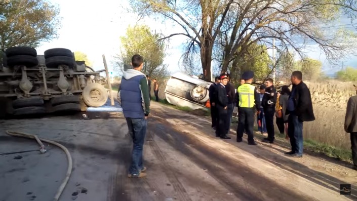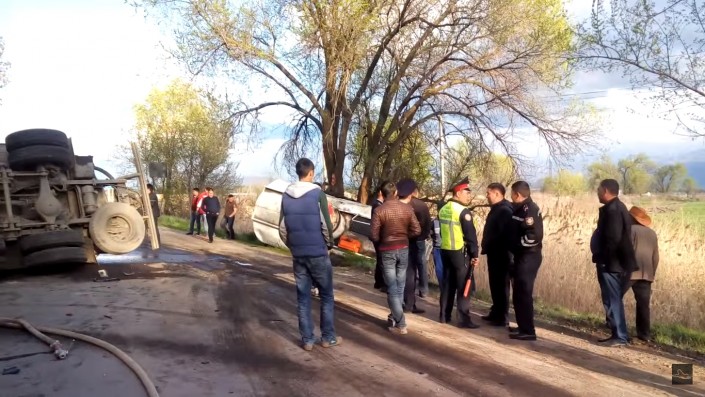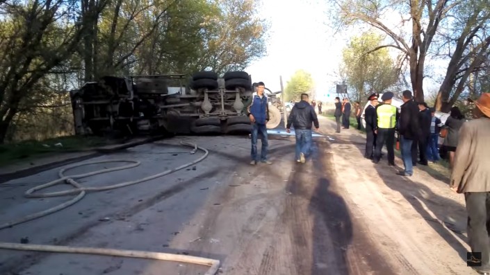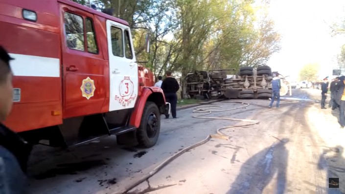 Под Алматы опрокинулся бензовоз с горючим © tengrinews.kz