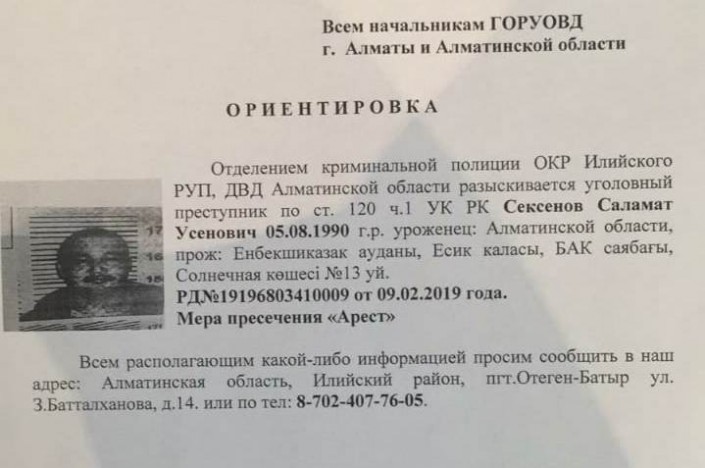 Всех, кто что-либо знает о подозреваемом, просят обращаться по телефону доверия +7 705 151 00 00.