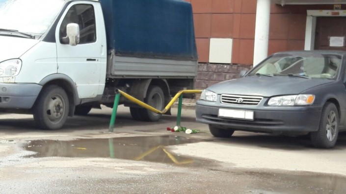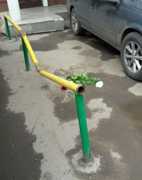 Он добавил, что примерно в 23.50 они услышали шум на улице. Именно тогда девушка и спрыгнула вниз. В результате падения погнулось металлическое ограждение около подъезда. По словам жильцов, девушка сама спрыгнула с перехода между лестничной площадкой и лифтовой.