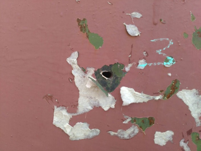На фотографиях отчетливо видны следы от пуль, выбитые стекла.
