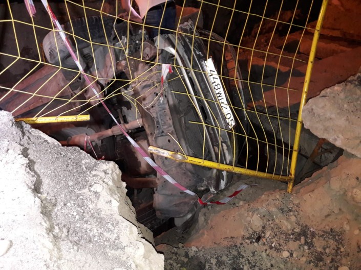 Инцидент произошел ночью 28 июня на пересечении улиц Толе би и Айтиева. Водитель легковушки двигался в западном направлении и по невыясненным обстоятельствам въехал прямо в яму. По предварительным причинам, мужчина не увидел выставленные строительное ограждение и дорожные знаки.