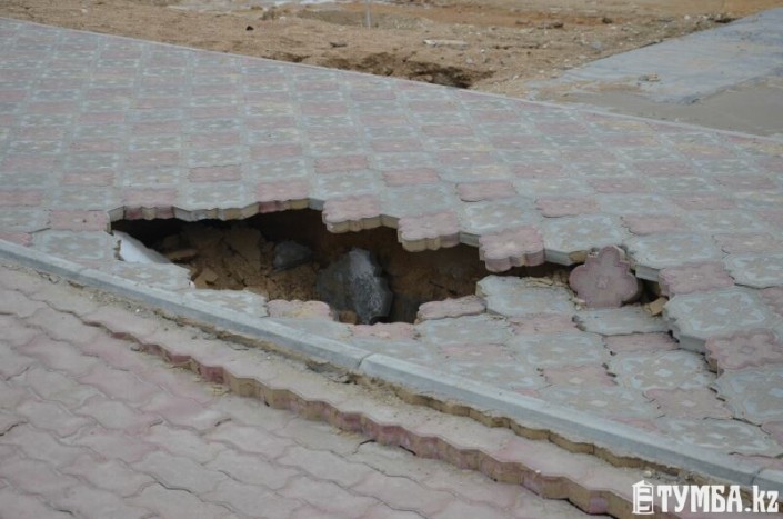 Построенная за 45 миллионов тенге велодорожка провалилась в Актау Фото с сайта Tumba.kz