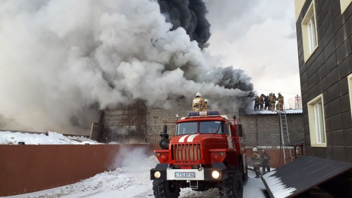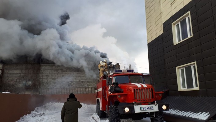 "Первые пожарные расчеты прибыли к месту вызова через 7 минут, в 12:43 часов. Силы и средства наращивались по повышенному номеру вызова. Пожарные производят тушение пожара с применением пенообразователя. Высокая температура и задымление обусловлено горением моторных масел непосредственно в очаге. Применяются меры по предотвращению распространение огня по всей площади склада. Не допущено горение в отдельных складских помещениях, где хранились большое количество горючих веществ и материалов", - сообщила Баймухамбетова.
