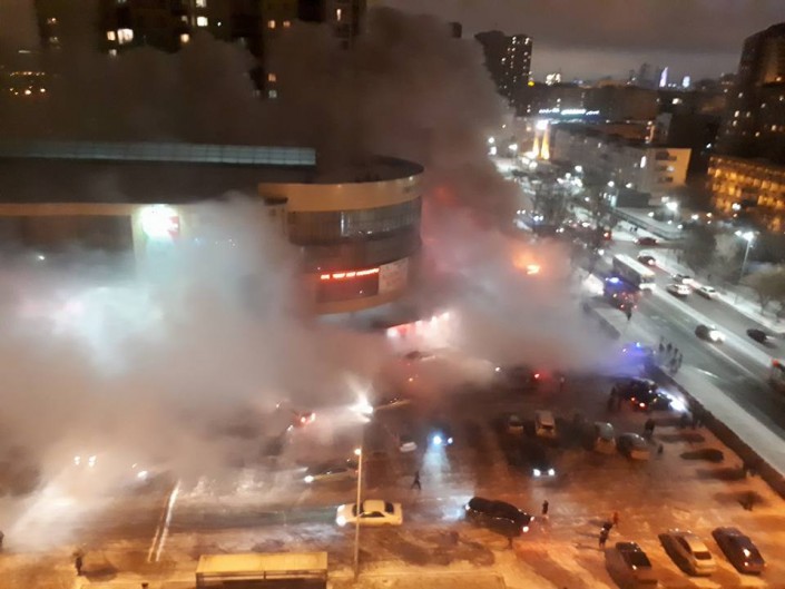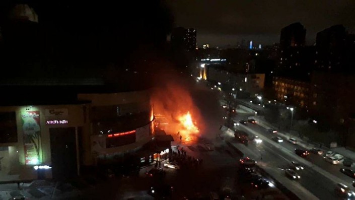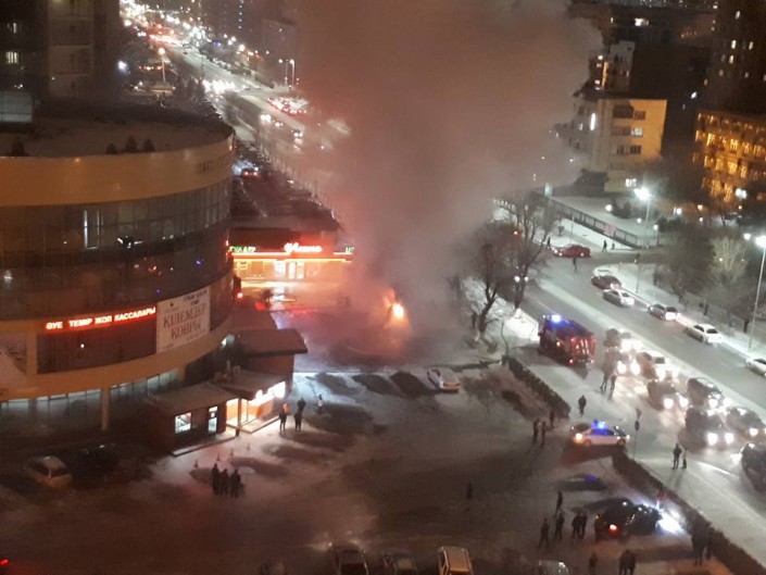 Вечером 19 ноября в центре Астаны возле торгового центра "Жаннур" произошел крупный пожар, горела донерная. Об этом очевидцы сообщили Tengrinews.kz.