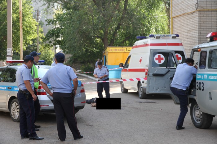 "Я пришла на работу в КСК около девяти часов утра. Только положила свою сумку на стол, зашла женщина в КСК и говорит: "На улице лежит труп человека". Я посмотрела в окно и побоялась выйти на улицу", - поделилась работница КСК Жумабеке Мутешова.
