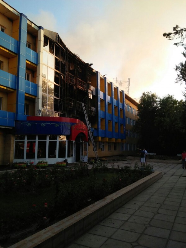 По данным пресс-службы, информация о пожаре в четырехэтажном здании санатория поступила 4 июля в 18.54. "Произошло загорание в трех номерах. Возгорание началось на втором этаже, затем огонь перешел на третий и четвертый этажи с переходом на кровлю здания", - сообщили в ДЧС.