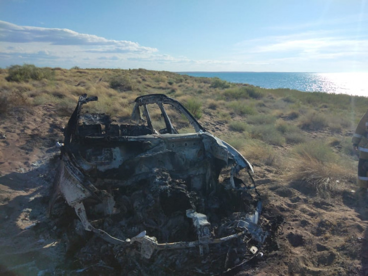 В Алматинской области водитель кроссовера застрял на берегу озера Балхаш, после чего автомобиль полностью сгорел, сообщает корреспондент Tengrinews.kz.