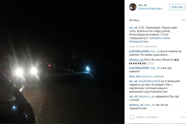 В соцсетях пользователи делятся переживаниями по поводу селя. "3:25. Эвакуация. Рядом идет сель. Взяли кота и пару доков. Атмосфера жутковата. Стоит страшный гул", - написал (орфография и пунктуация автора сохранены. - Прим. ред.) пользователь Instagram под ником ais_sti. У amenovazulfiya_13 похожая ситуация: "3:20 подъем ночью. Крики. Идет сель. На улице ужасный запах тины. Грязь. Быстро все сели по машинам, будили соседей, не успели собрать вещи. МЧС разворачивает машины. Неизвестно, чем все закончится. Уехали подальше. Звоните в 112, узнайте, докуда может дойти сель. Реки поднимаются".