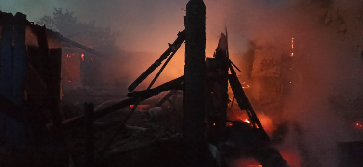 К этому времени дом, крытый двор, баня и хозяйственная постройка полностью были охвачены огнем.