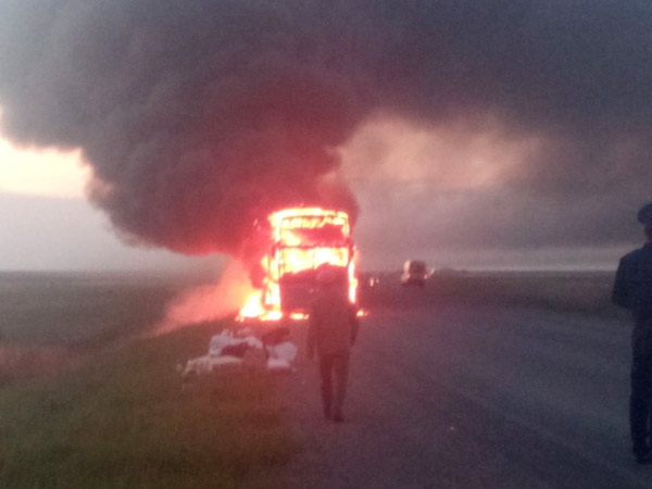 В Костанайской области сгорел междугородний автобус, следовавший в Астану, сообщает "Наша газета".