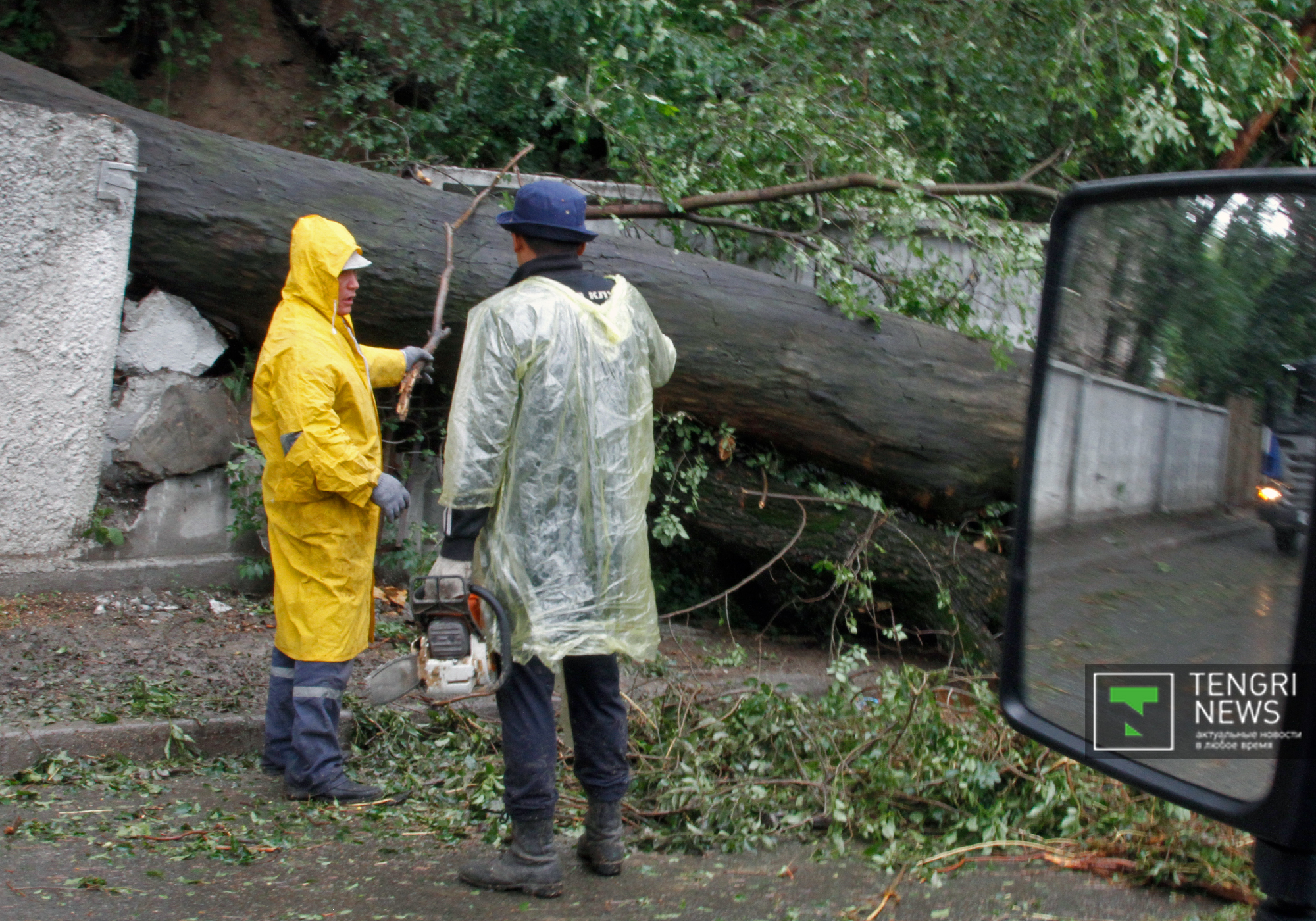Сильный ветер в Алматы повалил деревья и повредил несколько авто, передает корреспондент Tengrinews.kz со ссылкой на ДЧС города.