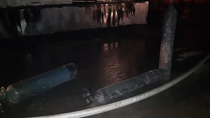 Из горящего склада ​пожарными эвакуированы три ​баллона с техническими газами объемом по 50 литров каждый.