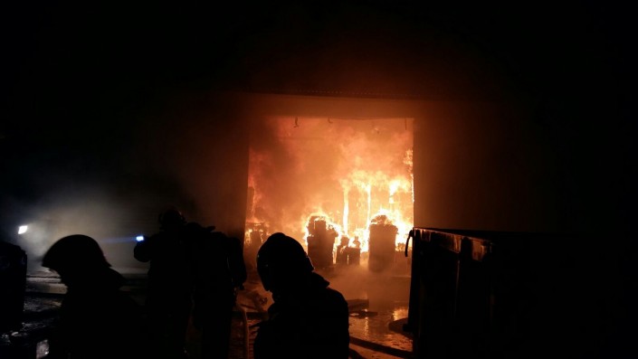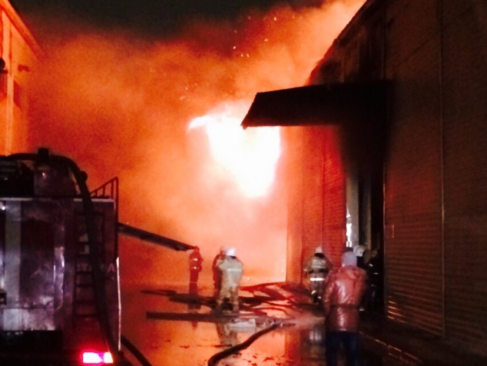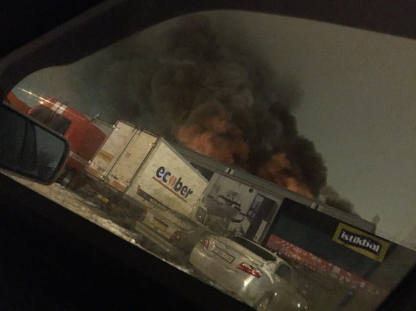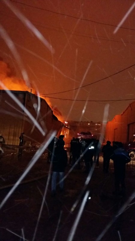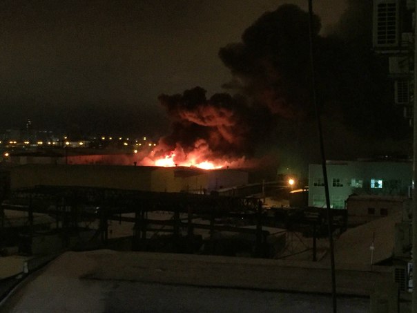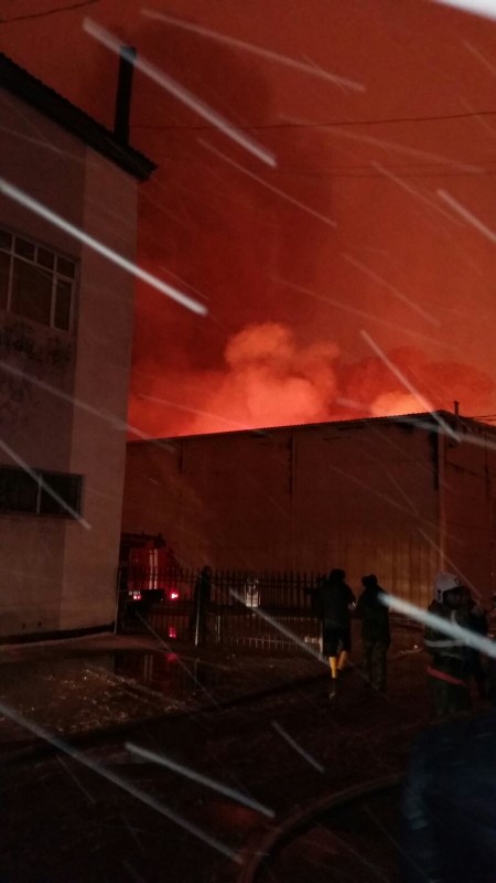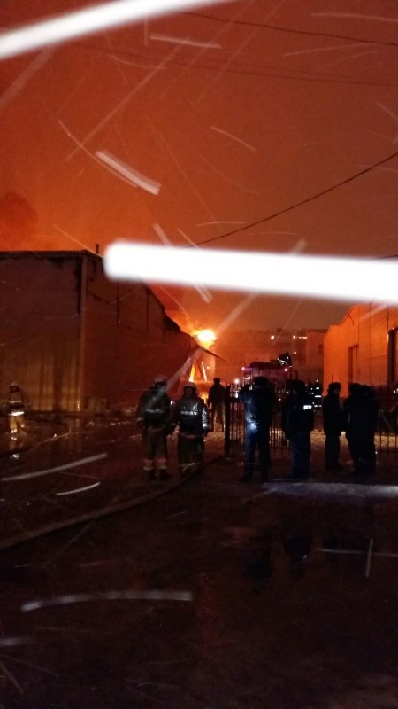 "По прибытию первых пожарных подразделений на место пожара стало известно, что горит склад резино-технической, бумажной и масляной продукции. По предварительной информации, площадь пожара 200-300 квадратных метров", - сообщили в ДЧС.