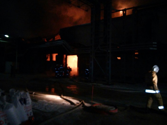 Как рассказал Иманкулов, информация о том, что на территории ТОО "Компания Нефтехим LTD" произошел пожар, поступила сегодня, 4 января, в 18.45 по времени Астаны. По данному сообщению по повышенному рангу №3 были направлены пожарные части в составе девяти единиц автотехники (8 автоцистерн, 1 автомобиль связи и освещения) и 30 человек личного состава. По прибытии к месту вызова первого пожарного подразделения через 18 минут, было обнаружено открытое горение цеха на площади 300 квадратных метров и сильное задымление.