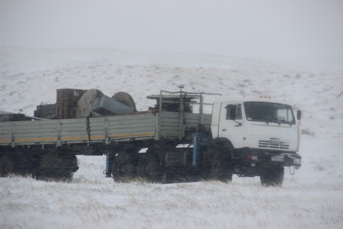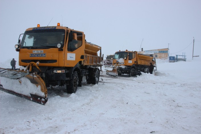 В результате сложных метеорологических условий - метель, сильный ветер, гололед - на автодороге "Алматы - Екатеринбург" на участке "Караганды - Аксу - Аюлы" произошло большое скопление грузового, легкового и пассажирского автотранспорта, следовавшего в направлении Караганды и Алматы.