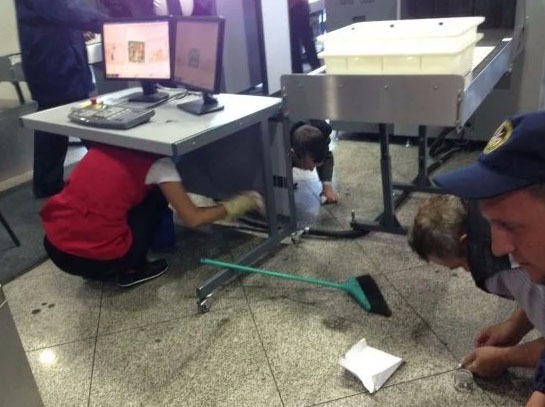 На фотографиях с места, где пассажир рейса Алматы - Тбилиси разлил ртуть, запечатлен процесс уборки помещения уже после того, как ртуть была удалена специалистами. Об этом в интервью Tengrinews.kz сообщил  химик-аналитик "Службы спасения города Алматы" Сергей Бургарт. По его словам, снимки сделали пассажиры, которых пустили в аэропорт уже после того, как спасатели убрали ртуть и уровень концентрации опасных веществ в воздухе упал до безопасного.