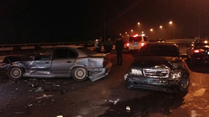 Тем временем Volkswagen Polo поднимался на юг по этому же мосту и столкнулся с BMW. Уже намного позже, на глазах присутствующих, в BMW на скорости врезается Mercedes-Benz. По предварительной версии, ДТП произошло из-за гололеда на дороге.
