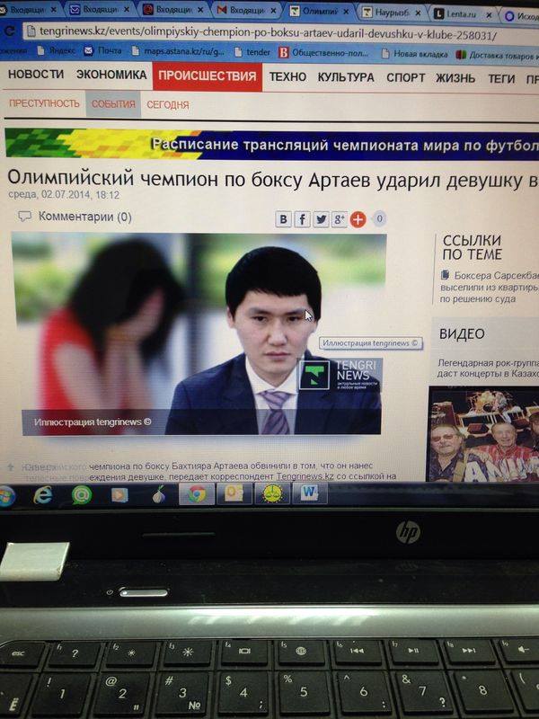 Отметим, что 3 июля Айсулу разместила на своей странице в Facebook скриншот с новости Tengrinews.kz под заголовком "Олимпийский чемпион по боксу Артаев ударил девушку в клубе". "Вот он... спорт и честь...", - прокомментировала девушка фотографию: