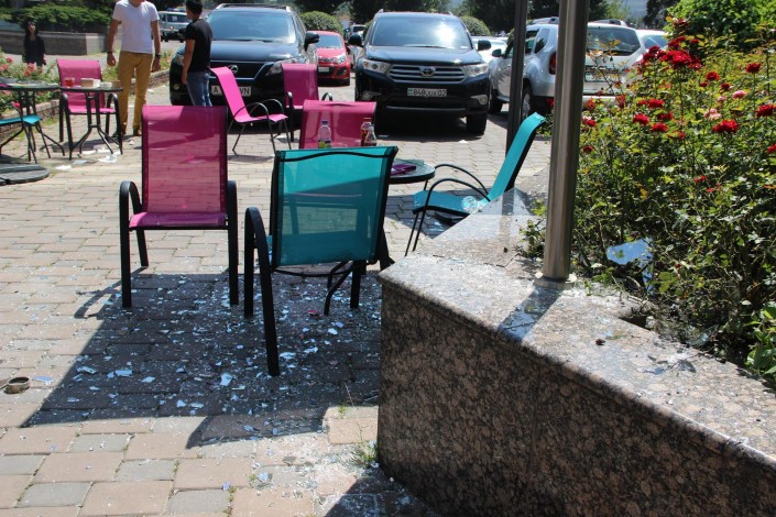 "Упало стекло, произошел инцидент. Девушка написала заявление, полиция сейчас будет разбираться. Мы к этому никакого отношения не имеем, мы арендаторы. Там, где произошло ЧП, - это территория общего доступа. Столы стоят просто и зонты для людей в общем доступе, мы за это не берем ни денег, ничего. Туда подходят люди, садятся. Мы просто за свой счет облагородили эту территорию, чтобы люди не стояли на жаре. Само кафе находится в здании, на первом этаже. Мы первую помощь оказали ей, лед вынесли, салфетки, пока не приехала "скорая", - рассказал директор кафе-бара "Odysseya" Алексей.