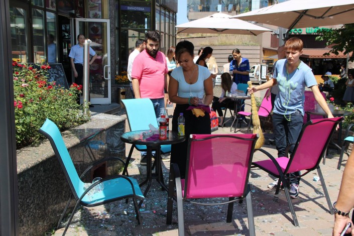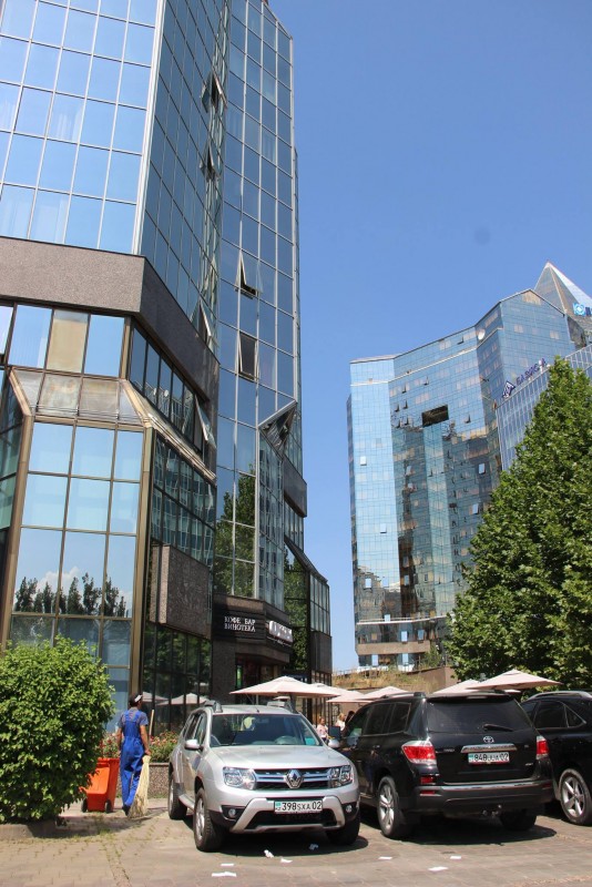 "На девушку, обедающую за столиком в летнике, упала масса стекла. Оказывается, посыпался верхний слой окна на верхнем этаже ЖК "Нурлы Тау". Бедная девушка пострадала серьезно: голова в крови и ноги тоже. Приехала "скорая" и по пути увидели спешащего туда же участкового. Люди, не ходите и не стойте вблизи стеклянных зданий. Опасно, выходит, для жизни и здоровья", - написала на своей странице в Facebook одна из очевидцев Zhanna Oishybayeva.