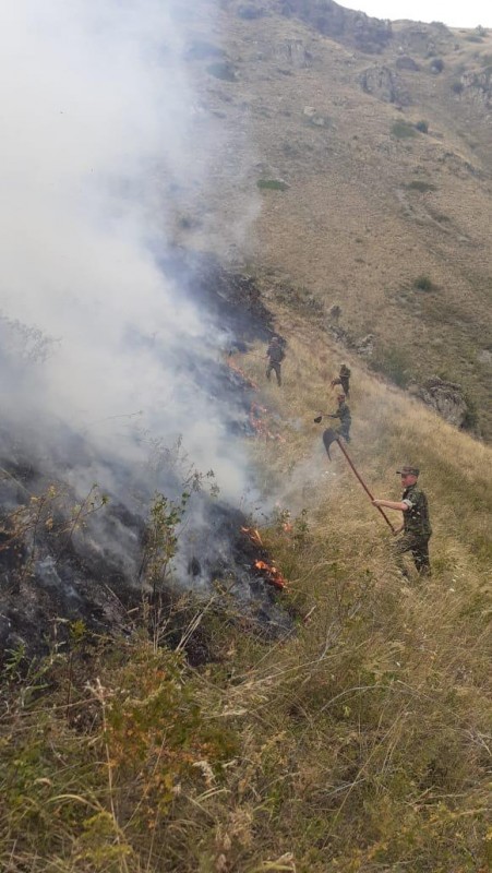 "При ликвидации очага возгорания, наряду с пожарными и сотрудниками полиции, были задействованы добровольные противопожарные формирования, образованные из местных жителей и работников лесного хозяйства. Тушение пожара усложнялось труднодоступностью горной местности, в связи с чем привлекался вертолет Ми-8 с водосливным устройством. В связи с отсутствием водоема для забора воды воздушное судно работало для транспортировки людей и обеспечения водой для ранцевых опрыскивателей", - объяснили в МВД.