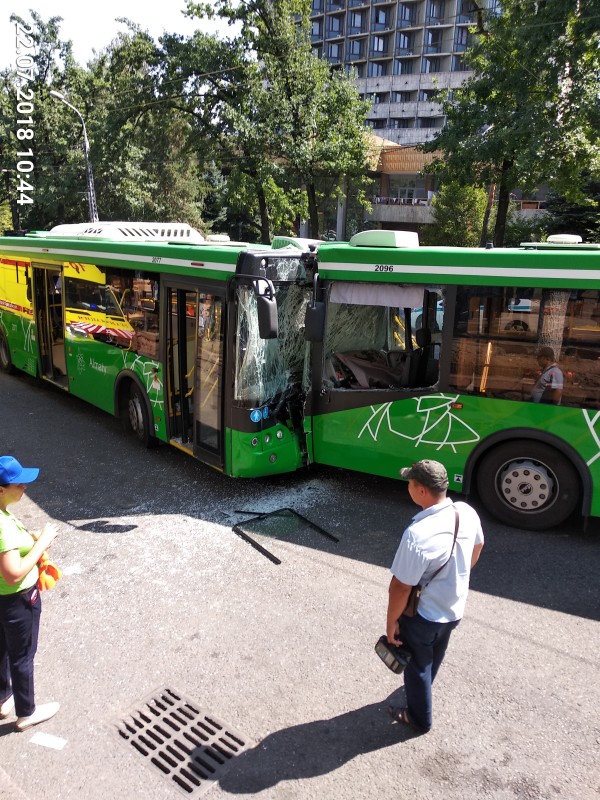 Столкновение автобусов на Абая - Достык: Водитель принял удар на себя