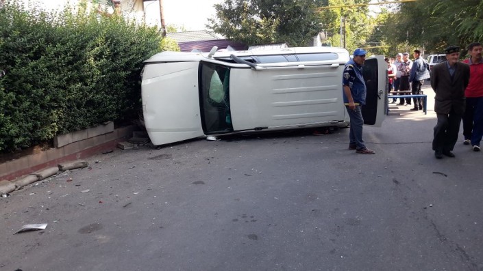 Subaru и Land Cruiser столкнулись в Алматы: большой внедорожник оказался на боку