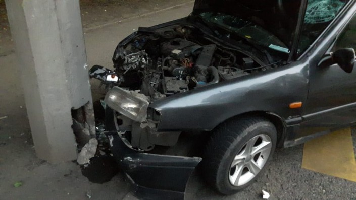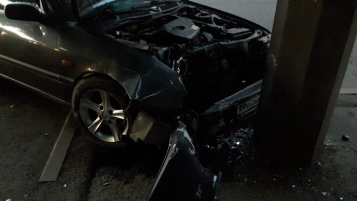 По словам водителя Nissan, он ехал в южном направлении и подобрал девушку, которая ловила такси. Пассажирка села на переднее сиденье. Водитель рассказывает, что она якобы была выпившей и в какой-то момент схватилась за руль и дернула вправо. Машина на полном ходу врезалась в бетонный столб уличного освещения.