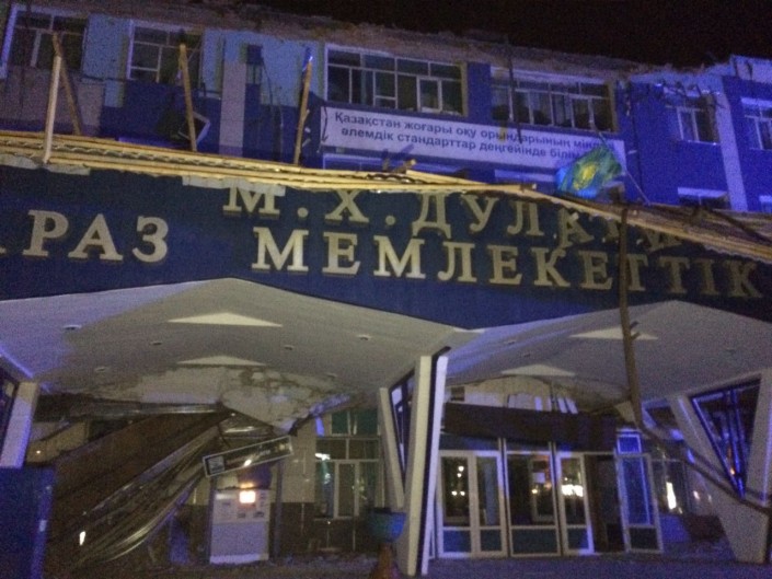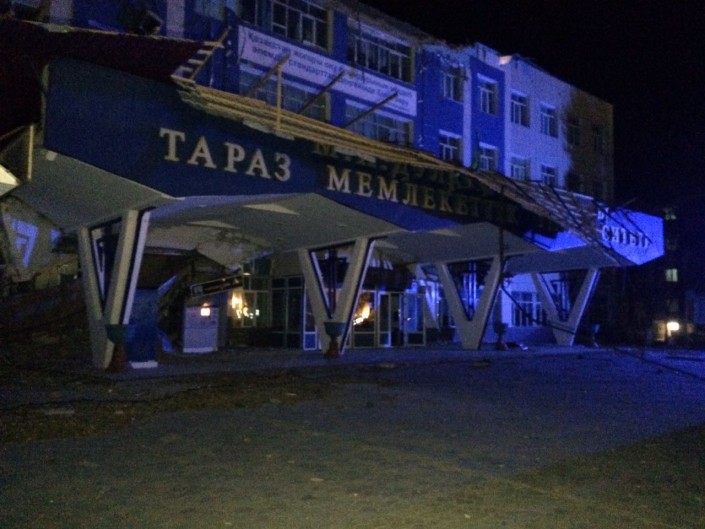 Кроме того, с одного из жилых комплексов, принадлежащих "Казахстанской ипотечной компании", снесло крышу. Также снесло часть крыши технологического корпуса Таразского государственного университета.