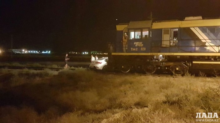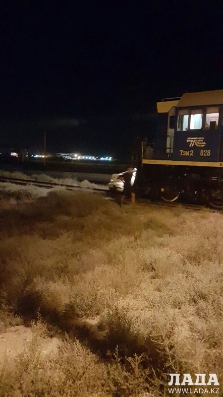 Тепловоз столкнулся с автомобилем в пригороде Актау Фото с сайта Lada.kz