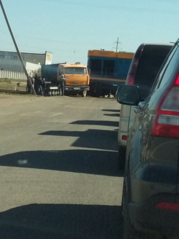 В Астане на подъездных путях столкнулись КамАЗ и тепловоз. Очевидцы прислали в редакцию Tengrinews.kz фотографии с места происшествия.