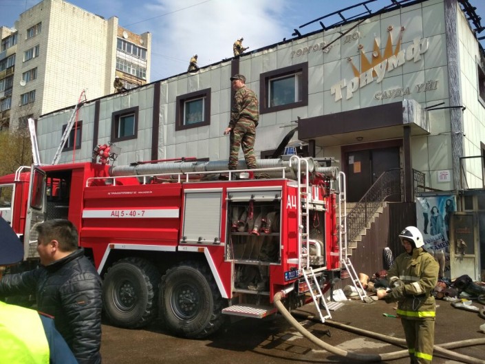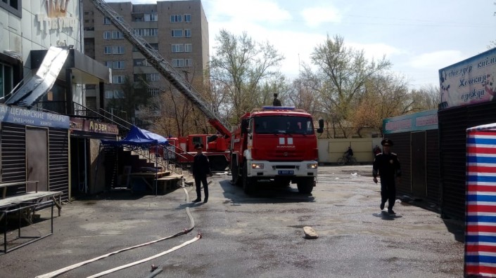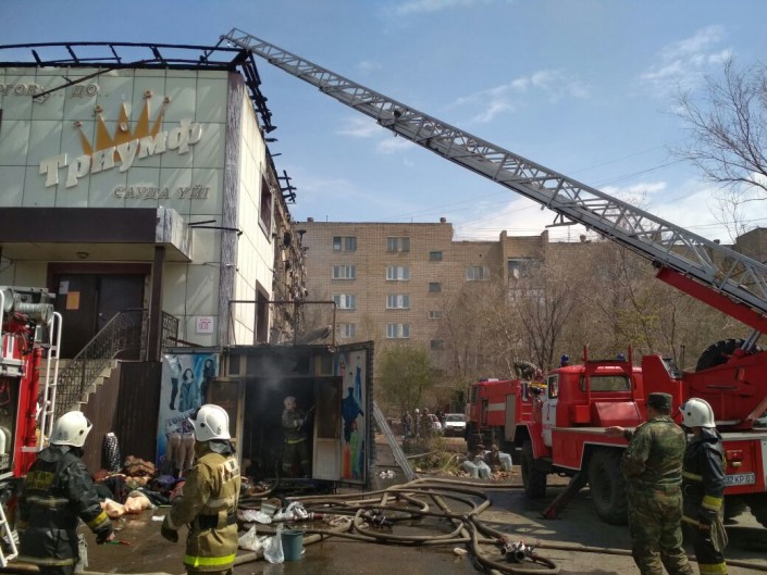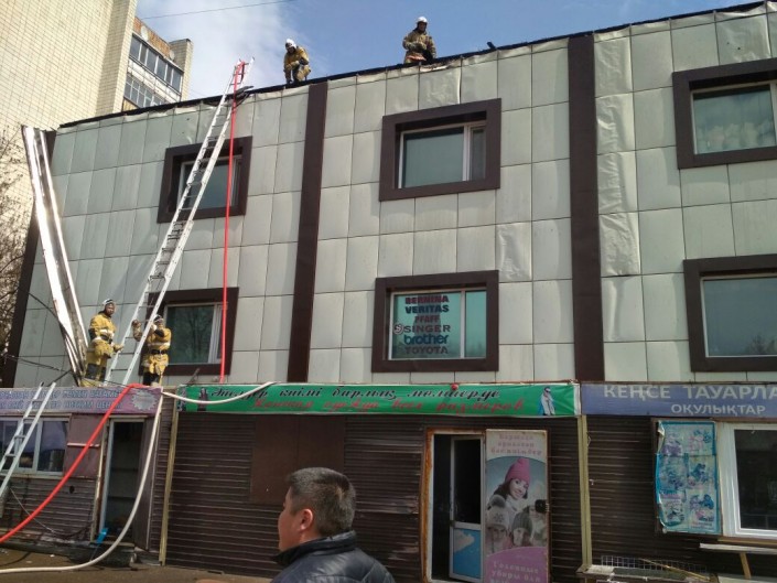По данным спасателей, пожар начался в 12.35 в Кокшетау. Произошло загорание кровли в  двухэтажном торговом доме "Триумф". Площадь пожара 450 квадратных метров.