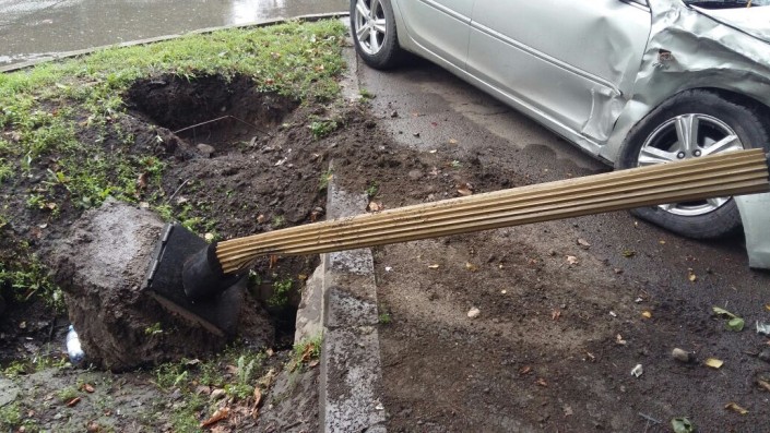 Автомобиль Toyota Camry снес светофор в результате ДТП в Алматы, передает корреспондент программы "Территория происшествий" на телеканале СТВ.