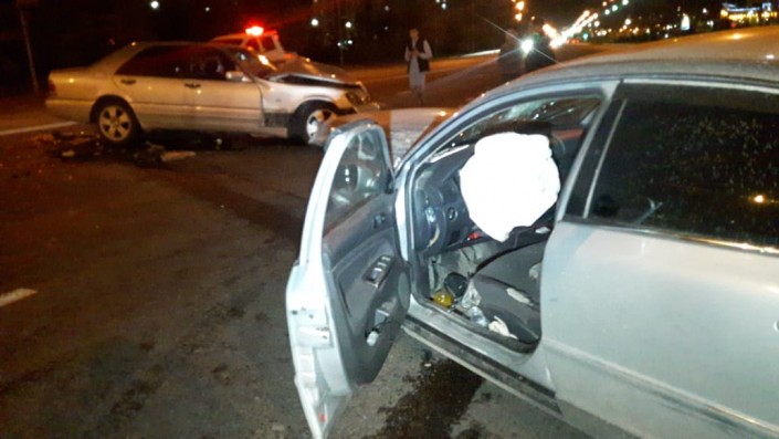 ДТП произошло на улице Момышулы, напротив "Алматы Арена". Со слов очевидцев, автомашина Mercedes-Benz двигалась в северном направлении и по невыясненным причинам выехала на полосу встречного движения, где столкнулась с Volkswagen. От удара Mercedes-Benz отлетел на сзади идущую Toyota.