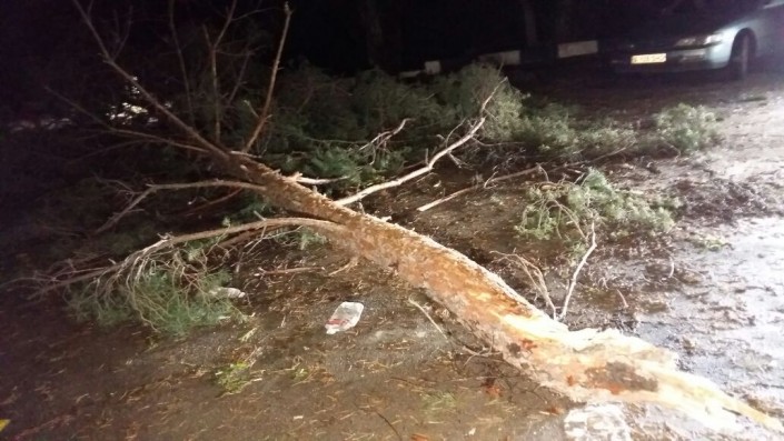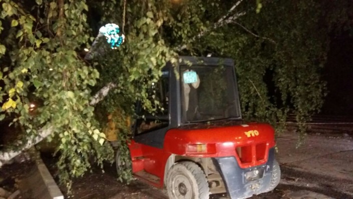 Упавшие во время дождя в Алматы деревья повредили 2 авто и погрузчик Фото программы "Территория происшествий" на телеканале "СТВ.