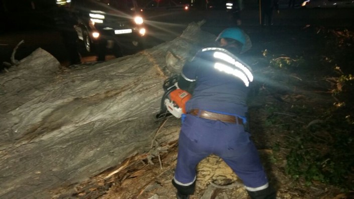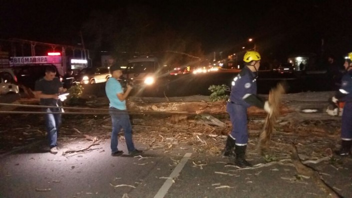 Упавший от ветра тополь перекрыл движение в Алматы Фото программы "Территория происшествий"