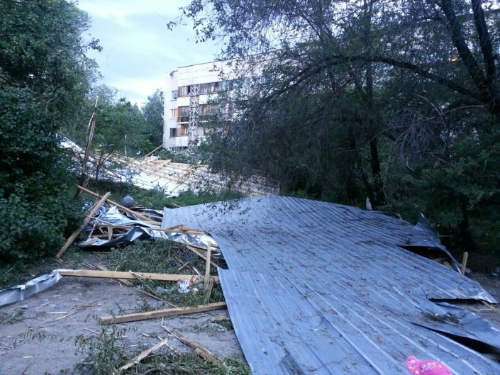 По словам проживающей в доме женщины, на ее глазах в один миг полностью сорвало крышу дома. Как отмечается, это произошло 18 июля примерно в 19.30-19.40 по времени Астаны. Очевидец отмечает, что никто из жильцов не пострадал.