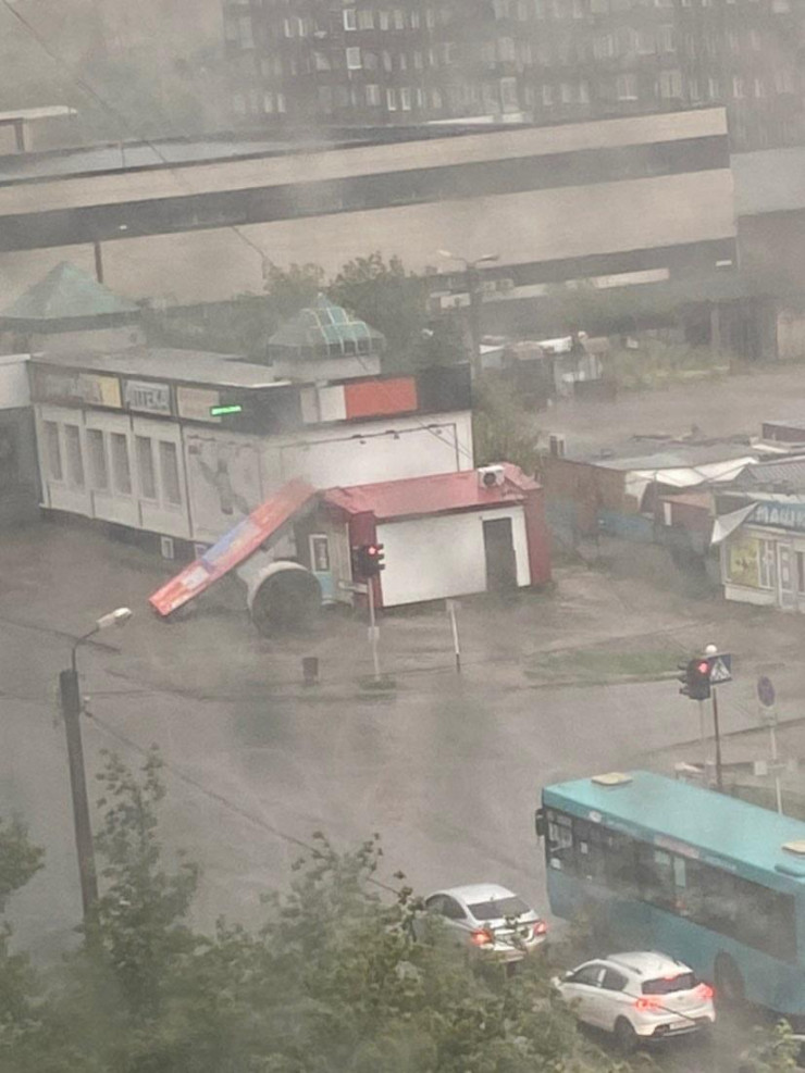 Кроме того, очевидцы публикуют фотографии поваленных вместе с корнями деревьев и огромных рекламных столбов. По всей вероятности, в результате их падения пострадали машины. Более точные масштабы урагана пока неизвестны.