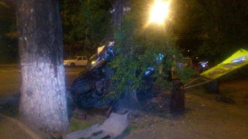 Ночью 14 мая в центре Алматы произошло ДТП с участием инкассаторской машины. Как передает корреспондент программы "Территория происшествий" на телеканале СТВ, автомобиль Honda, преследуемый полицейскими, на большой скорости врезался в инкассаторский фургон, в результате чего последний опрокинулся, а японская иномарка угодила в дерево, попутно сбив дорожный знак.