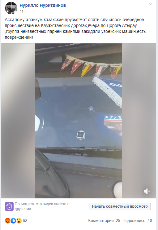 Неизвестные закидали камнями большегрузы из Узбекистана, вероятно, направлявшиеся в Атырау. Об этом сообщил в группе ОО "ОСА" в Facebook пользователь Нурилло Нуритдинов, передает Tengrinews.kz.