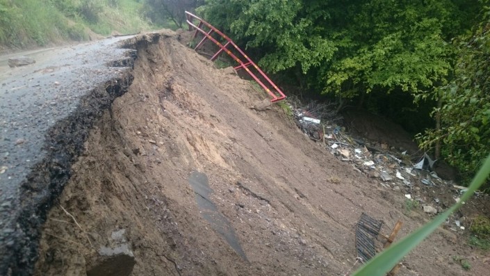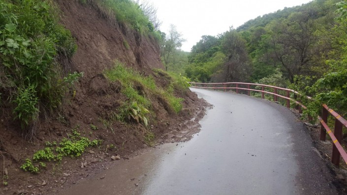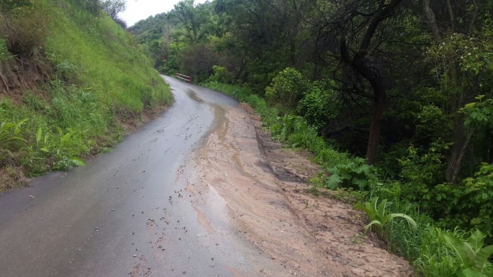 "На автодороге "Алматы-Сулусай" в Медеуском районе в период сильных дождей, где ранее наблюдался сход суглинистого грунта, произошло дальнейшее обрушение дороги и сход оползня. Общий объем сошедшего грунта составляет ориентировочно 60 кубических метров. Длина обрушенной дороги 30 метров", - сообщили в Казселезащите.