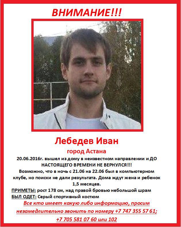 Иван Лебедев вышел из дома рано утром 20 июня. "Он пошел якобы на работу. Жене сказал, что вернется через несколько часов, а сам пошел играть в компьютерный клуб. Вечером в клубе Ивана встретил его лучший друг. Он его оттуда забрал и довел до дома. Во дворе они поговорили и расстались. Друг ушел, а братишка не вернулся домой", - рассказал брат пропавшего парня Николай Лебедев.