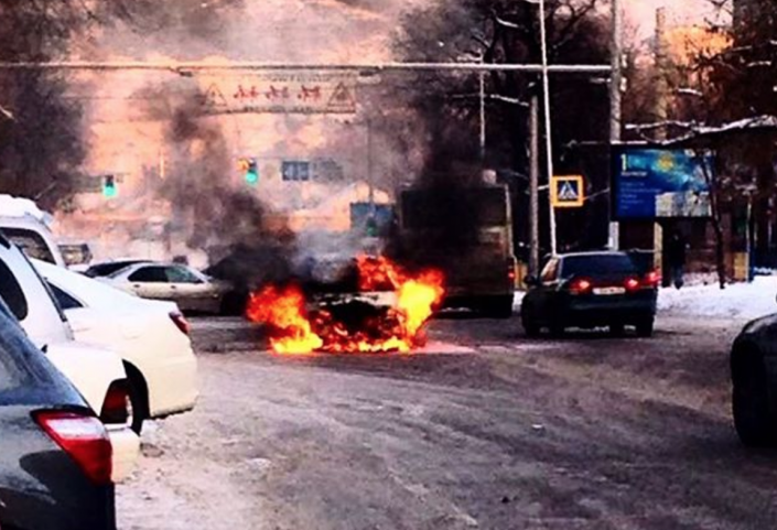 25 декабря в 16.21 на пульт "101" ДЧС Алматы поступило сообщение о том, что горит автомобиль на улице Толе би (угол улицы Калдаякова).